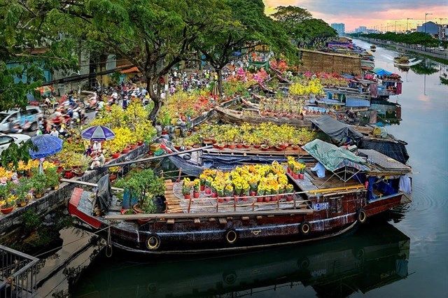 Chợ Tết ở Vĩnh Long nhộn nhịp với hoa mai, bánh mứt và các loại trái cây miệt vườn. Người dân đi chợ không chỉ để mua sắm mà còn để cảm nhận không khí xuân đang đến gần.